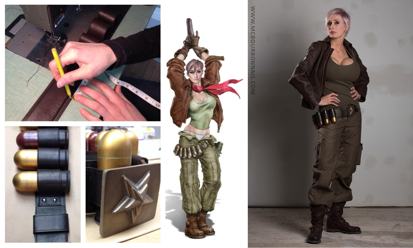 I made the leather bomber jacket, military pants, leather belt and belt buckle. And for the grenade rounds, I molded an airsoft grenade. ;)