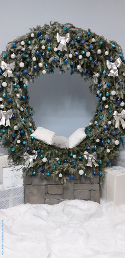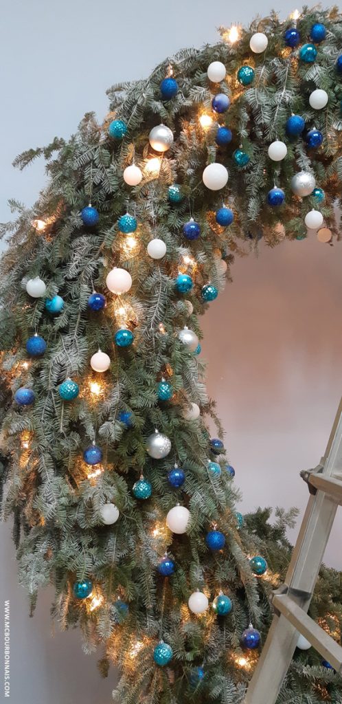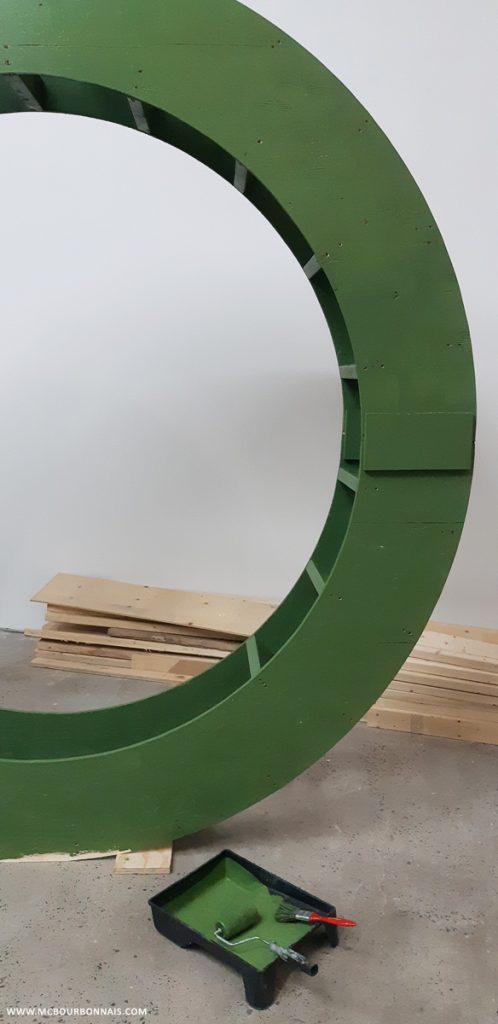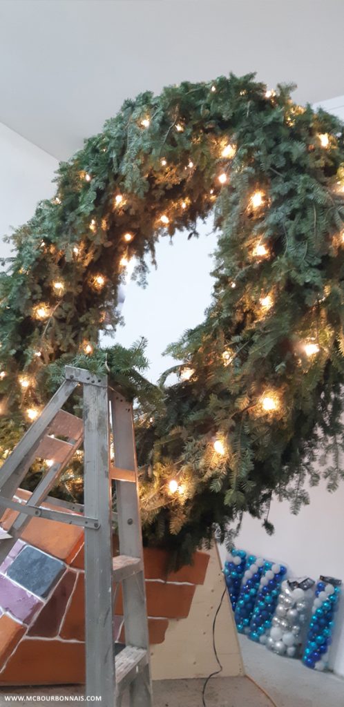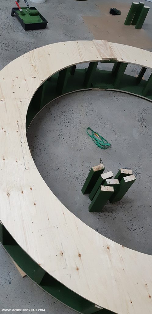 And here’s a few making of pics so you can see how I built the giant Christmas wreath. I started with a structure cut in plywood sheets.