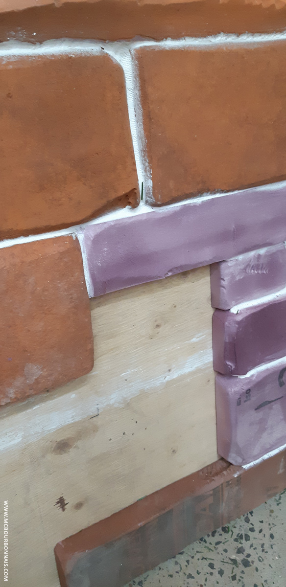 I made fake bricks using styrene sheets and a heat gun. The melted styrene has a very credible brick texture.