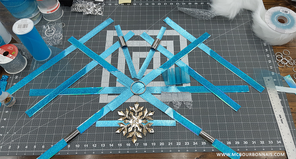 It was totally improvised, I had no idea at that point what my outfit would be. It was a last minute photoset organized in the middle of the Holidays, I didn’t have the time to order anything online, I could only use things available in local stores or things I already had at the workshop. I ended up doing a harness lingerie using vinyl sheets and crafting material bought, believe it or not, at my local dollar store. Here I am, analysing various design options… I was lucky enough to have a blonde wig that I could style to match Elsa’s hairstyle. And it worked! :D