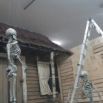 Yes, I built that set in my workshop! More than 1 month of intensive work… Pretty cool, right? :D Check out the gallery to see some BTS pics and discover how my skeletons hung from the ceiling like life size puppets with tons of fishing wires. I could change the pose of each skeleton thanks to these wires. It took forever to install and it made the photoshoot very time consuming… Yes, those wires were removed in Photoshop. Extra work for the photographer, sorry. But it was worth it. :D